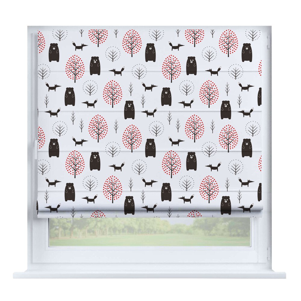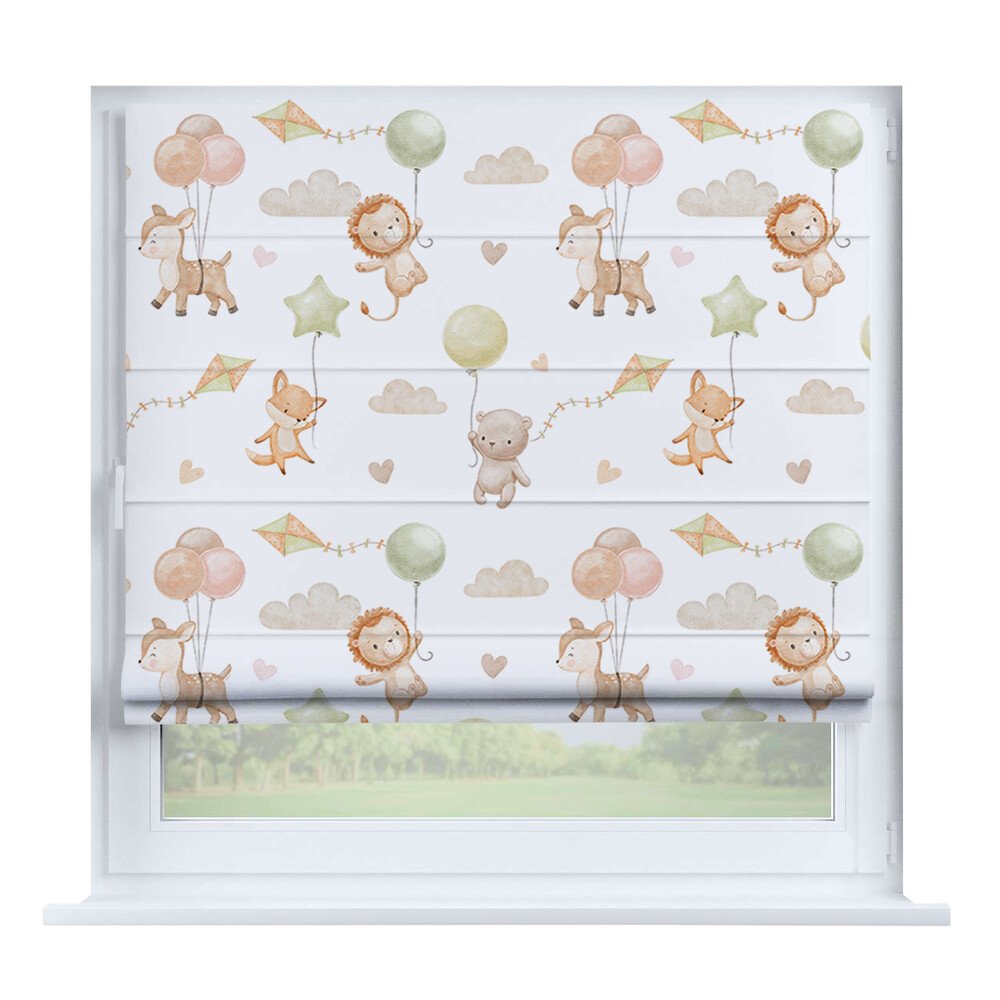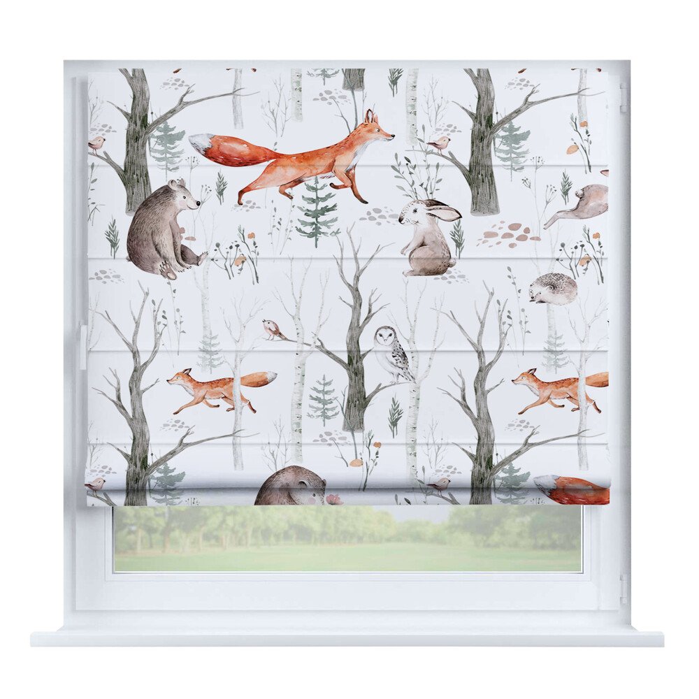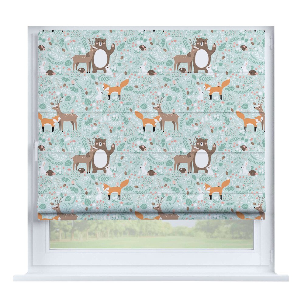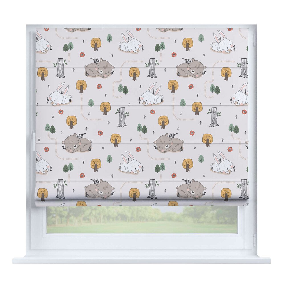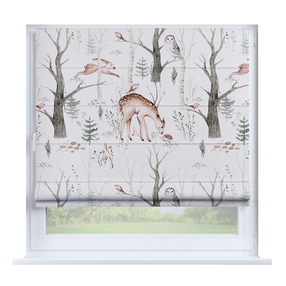 Римская штора для проёма «Скандинавский питомник», карниз верёвочный