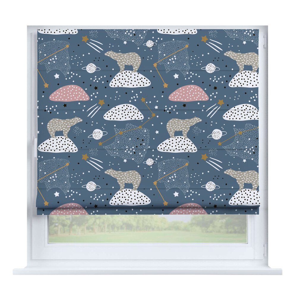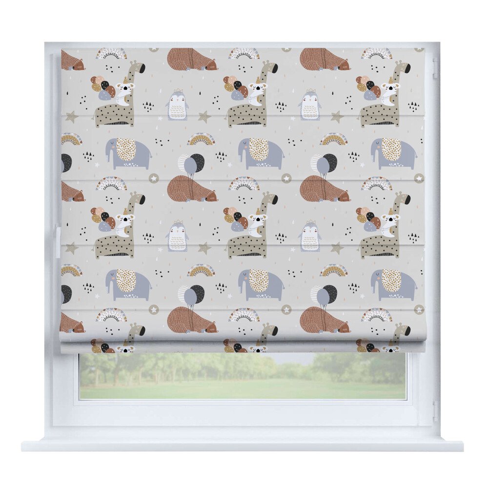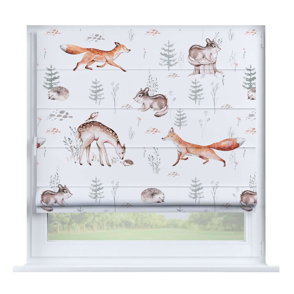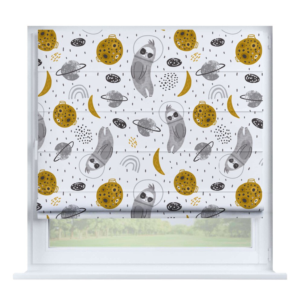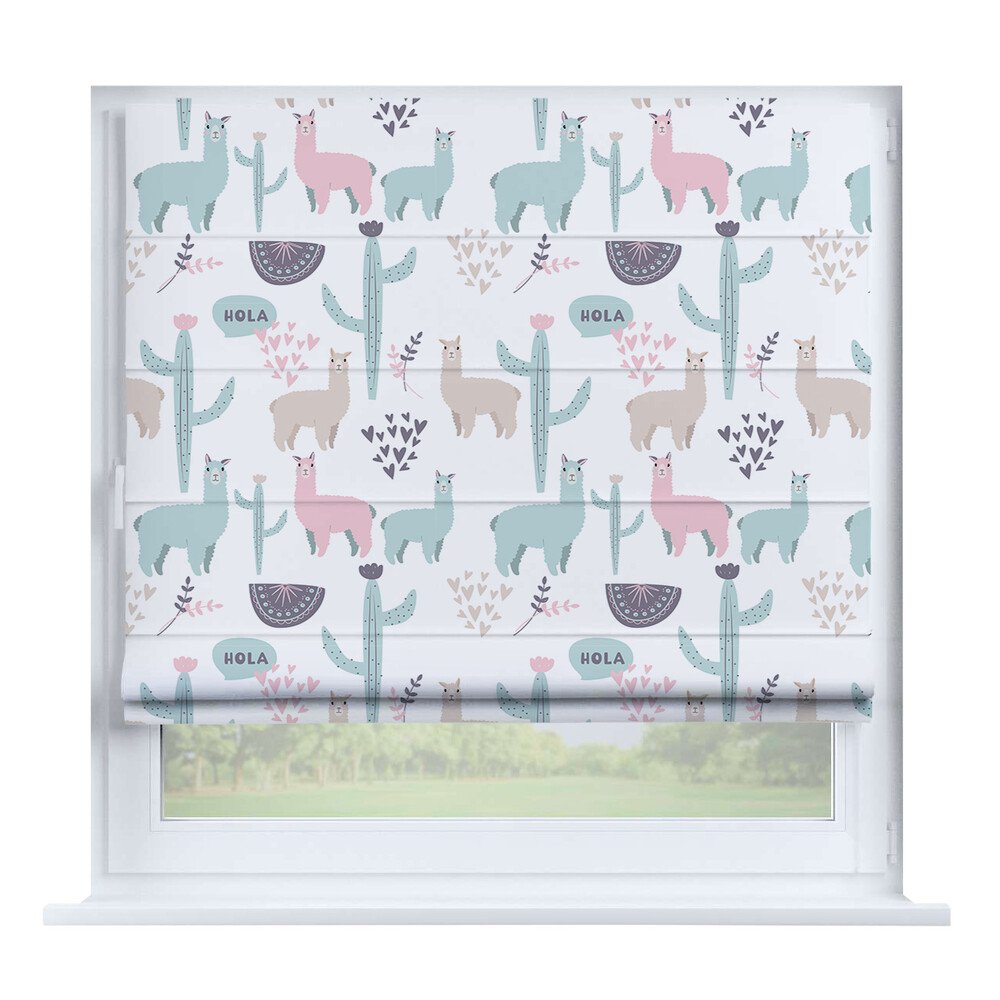 Римская штора для проёма «Скандинавский питомник», карниз верёвочный