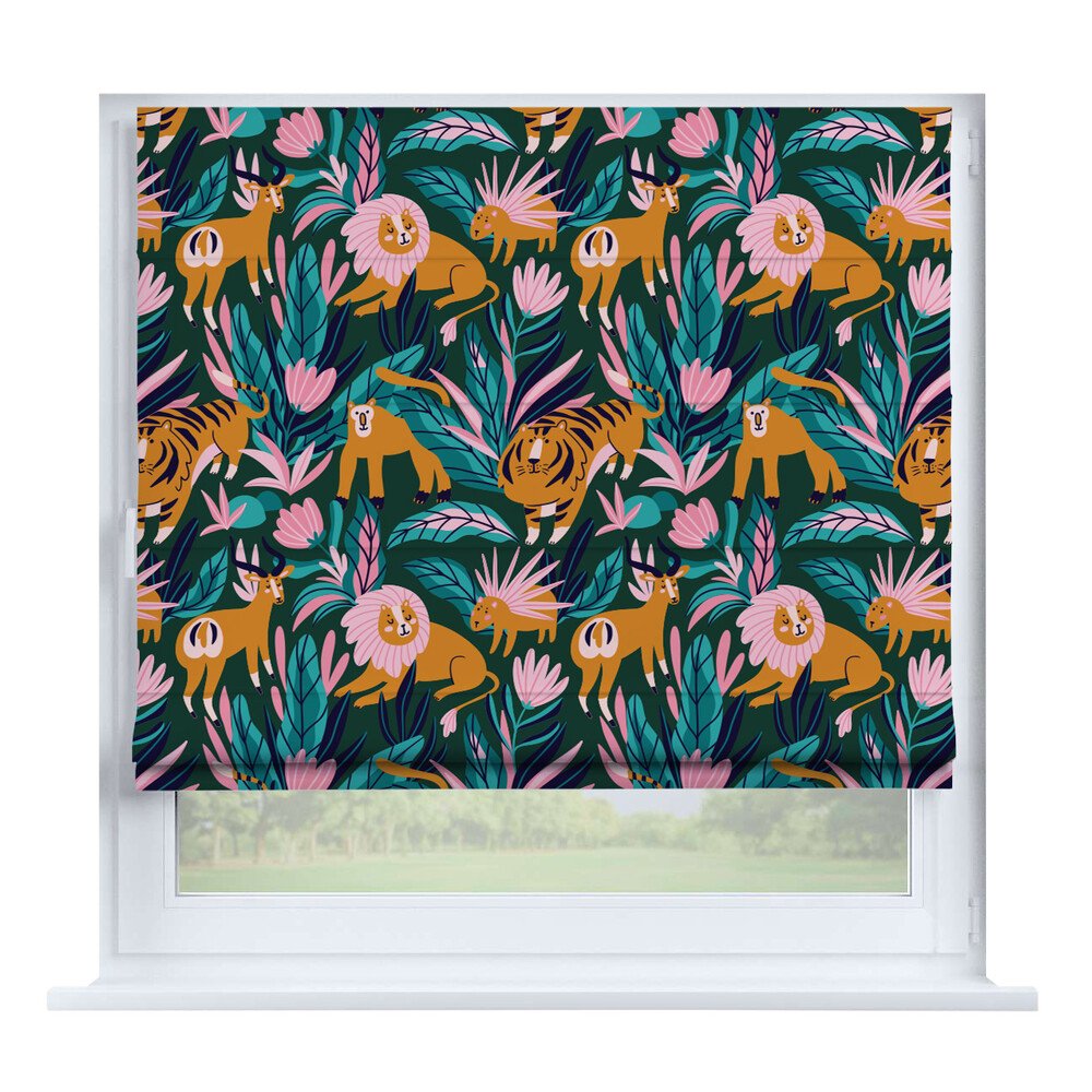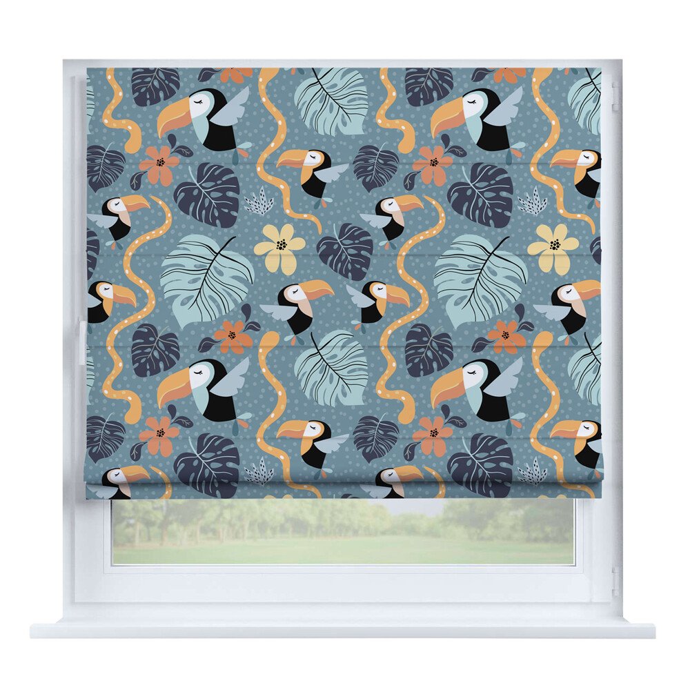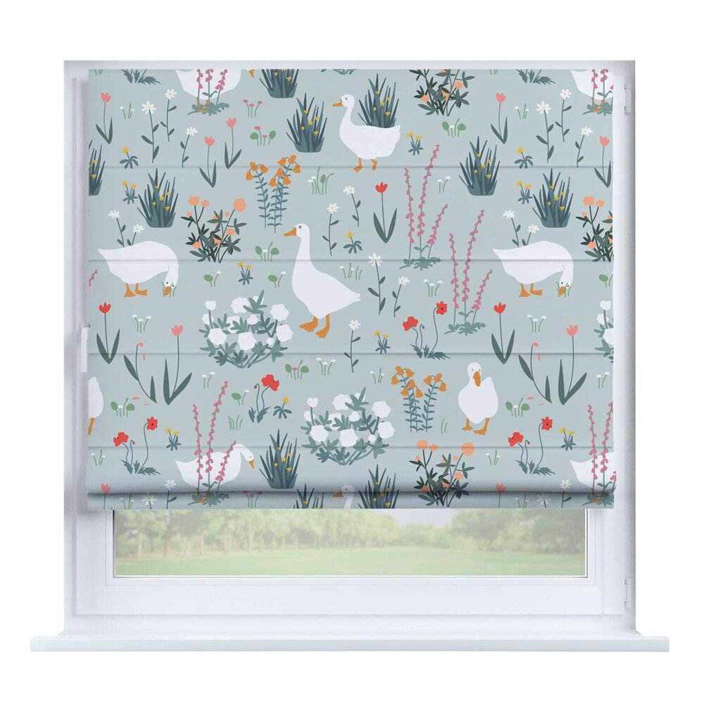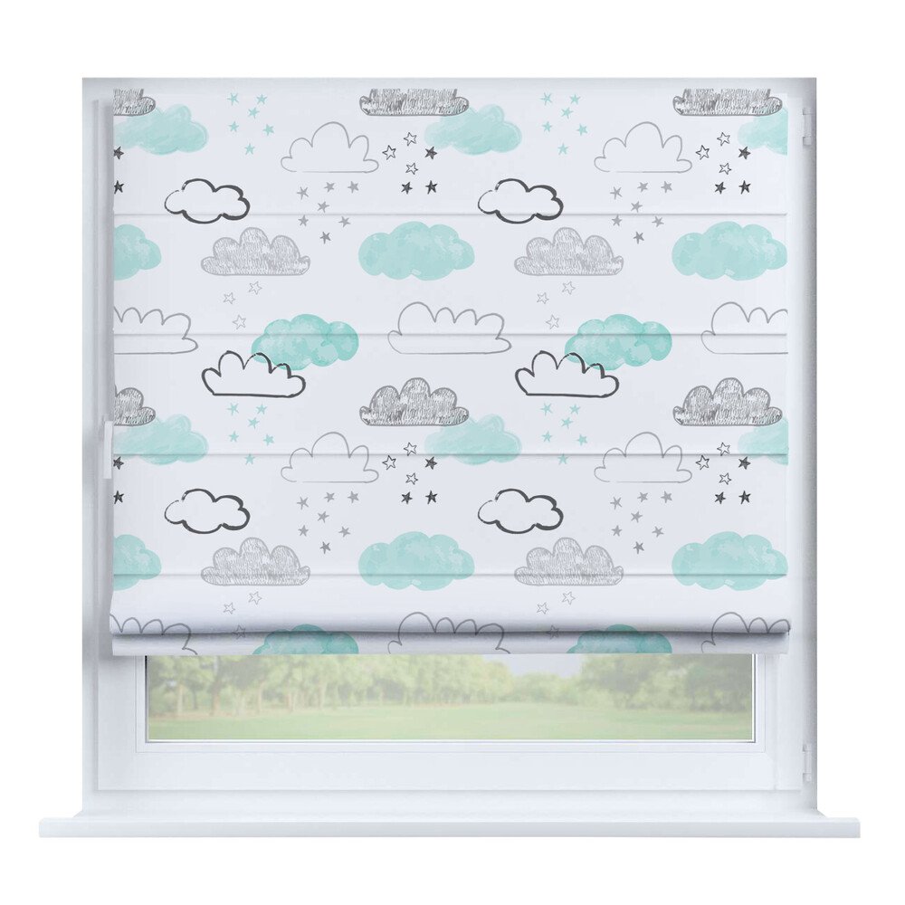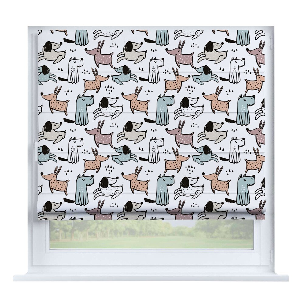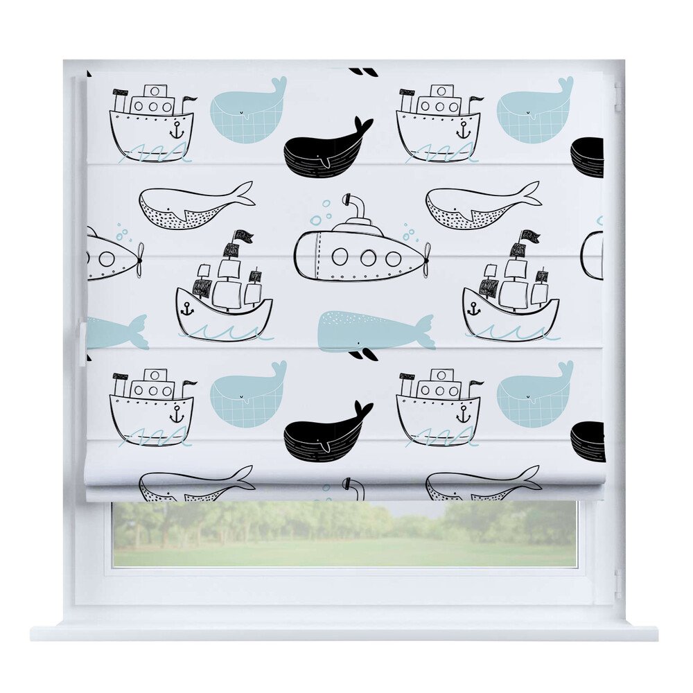 Римская штора для проёма «Скандинавский питомник», карниз верёвочный