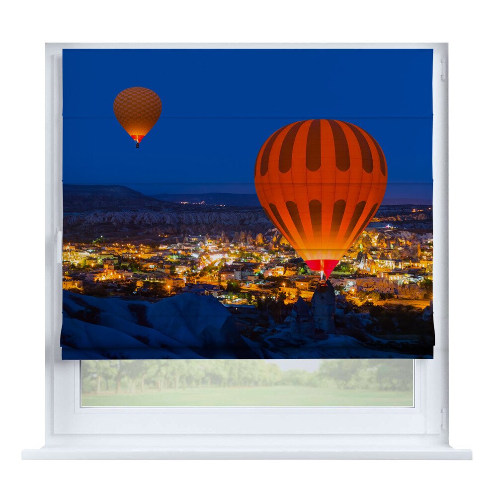 Римская штора для проёма «Вечерний город», карниз верёвочный