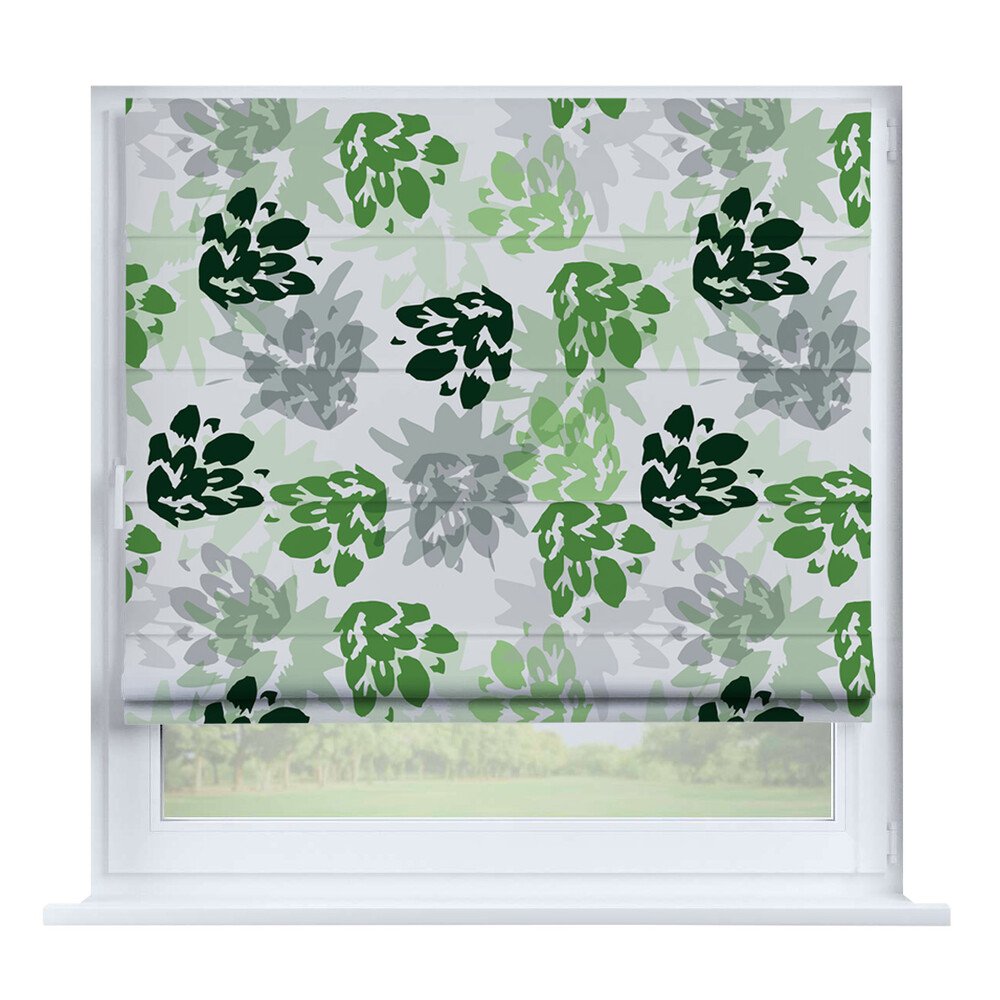 Римская штора для проёма лён димаут тёмно-зелёный, карниз верёвочный